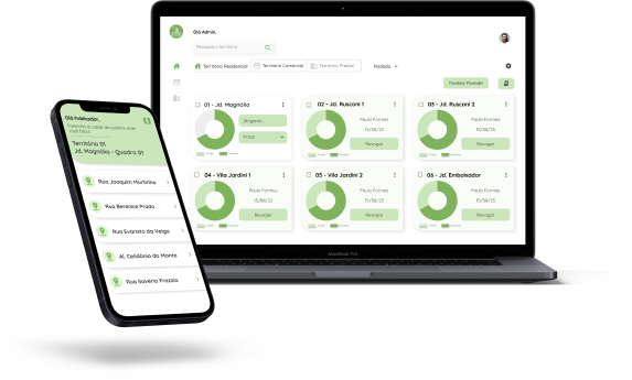 Gerencie territórios, quadras, ruas e casas em um único lugar.